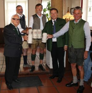 Ein Prosit auf die diesjährigen Festbiere. (v.l.n.r.): Werner Brombach (Inhaber ERDINGER Weißbräu), Dr. Stefan Kreisz (Vorsitzender der Geschäftsführung ERDINGER Weißbräu), Josef Westermeier (Geschäftsführer Marketing und Vertrieb ERDINGER Weißbräu), Max Gotz (Oberbürgermeister Stadt Erding) und Franz Hofstetter (stellvertretender Landrat) – Bildquelle: Wolfgang Krzizok
