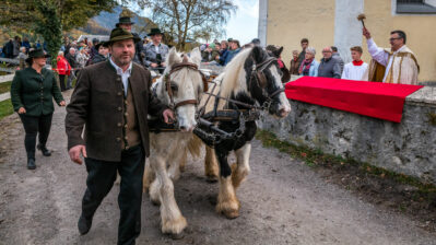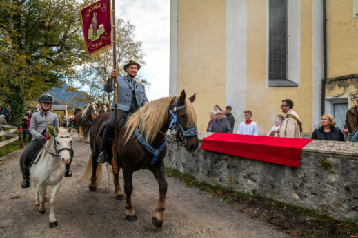 Dieser traditionelle Ritt findet in Nußdorf immer am 6. November statt, dem Namenstag des Heiligen. Das farbenfrohe Spektakel zieht auch in diesem Jahr viele Besucher, vor allem Familien mit Kindern aus nah und fern an.