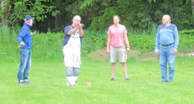 Fotos: Hötzelsperger – Eindrücke vom Trainingsbeginn bei den Hufeisenfreunden in Prien-Kaltenbach – von links ein Mannschafts-Quartett vor der Hufeisenhütte: Franz Obermaier, Hans Steindlmüller Andreas Willmann und Seppi Freund.