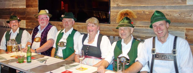 Zu einer transatlantischen-trachtlerischen Begegnung kam es im „Bayerischen Hof“ in Prien a. Chiemsee. Robert („Bob“) Hugel aus New York traf sich als Sprecher der vier Gaubeisitzer beim Gauverband Nordamerika zusammen mit seiner Frau Jutta mit Vertretern des Bayerischen Trachtenverbandes, des Chiemgau-Alpenverbandes sowie der beiden Trachtenvereine der Gemeinde Prien, „Daxenwinkler“ Atzing und Prien. „Mein Vater wanderte 1955 von Endorf nach Amerika aus, seither haben wir enge Verbindungen und Freundschaften mit Bayern und dem Chiemgau, das wollen wir aufrecht erhalten“ – so Bob Hugel, der sich wie schon bei seinen vielen bisherigen Besuchen unter anderem bei Trachten Bartl in Trautersdorf oder bei Stoff-Höfer in Prien immer wieder gerne über aktuelle und gute Trachtengewand-Ausstattung hat beraten lassen. Dazu sagte er: „Wir wollen echt bayrisch sein und unsere Tracht muss in Ordnung und schön sein“. Die Familie Hugel gehört dem Trachtenverein „Schlierachtaler“ in New York mit 60 Mitgliedern und 25 Aktiven an. Im nächsten Jahr ist in New Jersey das alle zwei Jahre stattfindende Gaufest vom Gauverband Nordamerika, dazu wollen sie gerne wieder Freunde aus Bayern willkommen heißen und betreuen. „Und im Mai 2022 wollen wir wieder bei Euch sein, wenn in der Nähe von Starnberg traditionell um den `Bayerischen Löwen` geplattelt wird“ – dies fügte Bob Hugel noch mit besten Grüßen von Nordamerikas Gauvorstand Tom Vogt hinzu. Wie gut der kameradschaftliche Austausch zwischen nordamerikanischen und bayerischen Trachtlern ist, zeigte die Freundschaftsbegegnung in Prien. Sowohl Zweiter Gauvorstand Georg Westner vom Chiemgau-Alpenverband als auch Priens stellvertretender Vorstand Klaus Löhmann und Atzings Trachtenvorstand Michael Schlosser berichteten über ihre persönlichen Erfahrungen und Begegnungen. In den vielen Jahren der gegenseitigen Kontakte waren schon mehrfache und gegenseitige Besuche bei Gaufesten in Nordamerika oder in Bayern. Sowohl Georg Westner als auch Klaus Löhmann waren schon bei Trachtenfesten „über dem Teich“. Und Bob Hugel freute sich, dass er nach seinem Besuch beim Chiemgauer Gaufest in Atzing im Jahr 2017 wieder den damaligen Festleiter und nunmehrigen Vorstand Michael Schlosser traf.