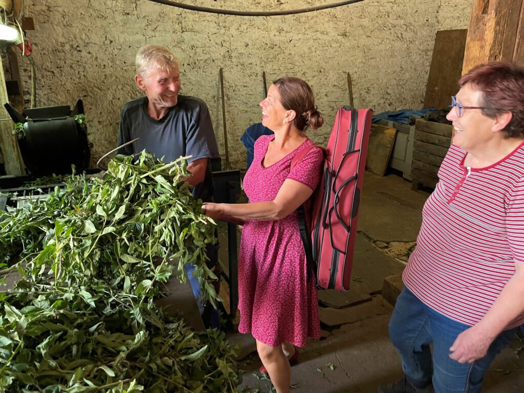Pfefferminzbauern: Heinrich und Gerlinde Ludwig mit Traudi Siferlinger