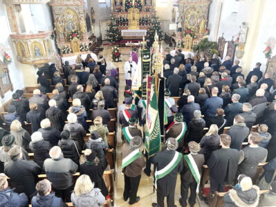Fotos: Hötzelsperger – Trauergottesdienst in der Frasdorfer Kirche mit den Ortsvereins-Fahnen für Anderbauer Johann Huber