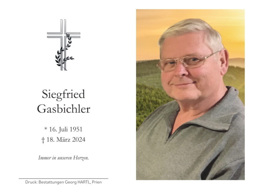 Sterbefoto:  Siegfried Gasbichler, verstarb mit 72 Jahren in Bernau a. Ch.