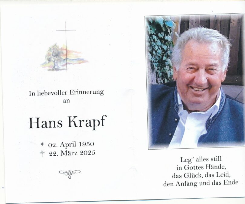 Eine große Trauergemeinde, die auch die werteorientierte Lebensweise von Hans Krapf würdigte, begleitete die Familie auf ihrem Weg zur letzten Ruhestätte auf dem Friedhof in Altenbeuern. „Da Berndl-Hans“, wie er im Dorf, im Freundes- und Arbeitskreis bekannt war, wurde an seinem 75. Geburtstag zu Grabe getragen.