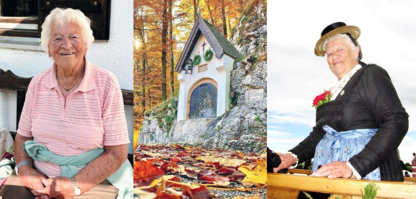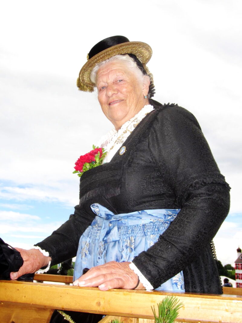 Beim Trauergottesdienst mit Pfarrer Paul Janßen und Diakon Dr. Christian Elsen wurde daran erinnert, dass Ida Feistl am Burgweg in Hohenaschau zur Welt kam und dass sie keine Erinnerungen an ihren im Krieg verstorbenen Vater haben konnte. Bereits in jungen Jahren half sie ihrer Mutter und deren zweiten Mann auf der Hofalm. Im Jahr 1957 heiratete sie ihren Mann Anton, zog mit ihm nach Außerwald und erfreute sich in steter Fröhlichkeit an der wachsenden Familie. In einem Nachruf dankte Aschaus Bürgermeister Simon Frank der Verstorbenen für ihren langjährigen Dienst als Reinigungskraft im Hohenaschauer Schloss zugunsten der dortigen Schlossführungen und für die Tourist-Information der Gemeinde. Auch beim Katholischen Frauenbund war sie mehrfach engagiert, unter anderem bei den Caritas-Sammlungen. Claus Reiter als Vorstand vom Trachtenverein „D´Griabinga“ Hohenaschau sagte „Vergelt´s Gott“ dafür, dass Ida Feistl vom kleinen Trachtendirndl bis zuletzt bei den vorjährigen Gaufest-Feierlichkeiten aktiv dabei war und sagte: „Die Ida war seit 1956 Mitglied in unserem Verein, von 1994 bis 2009 war sie unsere Röckefrauenvertreterin und lange Zeit hat sie für unsere Mitglieder den Heimat- und Trachtenboten ausgetragen“. Der GTEV Hohenaschau ehrte die Verstorbene mit der Fahnenabordnung ebenso wie die Trachtenvereine „Edelweiß“ Niederaschau und „D´Geiglstoana“ Sachrang, bei denen sie auch Mitglied war. Die musikalische Gestaltung in der Pfarrkirche und auf dem Friedhof übernahmen die Familienmusik Wörndl sowie das Flügelhorn-Duo Gawlik-Hilger.