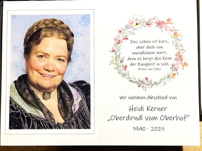 „Mit ihrer Schwester Marianne und als die Obern-Dirndl hat sie bei Hunderten von Veranstaltungen Tausende von Herzen berührt, mit ihrer Musik und mit ihrem Gesang hat sie das Leben bereichert und viel Freude bewirkt“ – mit diesen Worten begann Pater Marius Balint vom Pfarrverband Chieming den Nachruf in der Pfarrkirche „Mariä Himmelfahrt“ für Heidi Kerner vom Oberhof in Chieming.