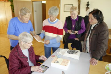 Ihre besonderen Verdienste um das Priener Ferien- und Seniorenprogramm lobte Helga Stampfl als Seniorenbeauftragte, dabei erinnerte sie daran, dass Renate Schuderer im Jahr 2003 die Idee zum Seniorenprogramm hatte und so lange es gesundheitlich ging half sie mit ihrem Organisationstalent, mit ihren Ideen und mit ihren Texten mit. „Heute sind wir 10 Personen, die das Seniorenprogramm betreuen, wir alle versprechen, dass wir im Sinne von Renate dabeibleiben“ – so Helga Stampfl. Einen weiteren Dank gab es vom Priener Trachtenverein. Dessen stellvertretender Vorsitzender Lorenz Obermüller dankte für die Vereinszugehörigkeit seit 2017 mit einer Blumenschale und mit einem letzten Fahnengruß. Auch die Priener Kolpingfamilie ehrte mit ihrer Fahne die Verstorbene ob ihrer Verdienste zu dieser Gemeinschaft. Die musikalische Gestaltung in der Pfarrkirche übernahmen der Chiemseewinkl-Dreigesang sowie Bartholomäus Prankl mit Orgelweisen, auf dem Friedhof spielte ein fünf Mann starke Beerdigungsmusik aus den Reihen der Priener Blaskapelle.