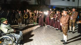 Angesichts des aktuellen Überfalls von Russland auf die Ukraine und auf die Bilder des Krieges mit der geschundenen Bevölkerung ist die Stimmung am Morgen sehr bedrückend. Xaver Stadler war selbst im Krieg, im Februar 1942 wurde er zur Heeresflack nach Freising einbestellt. Als Motorradfahrer gehörte er zur Krad-Melder-Staffel und der Marschbefehl lautete in Richtung Russland. „Wenn mein Vater im Krieg die ganze Ukraine durchquert hat sowie nach Stalingrad und nach Moskau unterwegs war, dann erleidet er mit seinen Erinnerungen und den aktuellen Fernsehbildern seinen Krieg ein zweitesmal“ – so Tochter Gertraud. Xaver Stadler will selber nicht zu viel über seine schlimmen Erlebnisse erzählen, seine Gedanken sind bei der Bevölkerung der Ukraine und bei den Soldaten, die ihre Heimat verteidigen bzw. die unmenschlichen Befehle ausführen müssen. Der Soldat Xaver Stadler wurde bei seinem Einsatz zweimal verletzt. Ein erstes Mal mit einem Streifschuss im Süden Rumäniens und ein zweites Mal bei einem Einsatz am Schwarzen Meer mit Verletzungen im Oberschenkel und in der Brust. Dazu gibt es eine besondere Geschichte, denn Xaver Stadler hatte eine Zigaretten-Dose aus Blech in der Hosentasche und diese fing einen weiteren Splitter ab, dazu sagte er: „Das hat mir wohl das Leben gerettet, diese Dose mit dem sichtbaren Einschuss habe ich mir aufbewahrt!“. Aufgrund der schweren Verletzungen kam Stadler dann zu einem Hauptverbandsplatz, von dort wurde er mit der Bahn nach Regensburg transportiert und von da ging es ins niederbayerische Abendsberg, das dortige Schulhaus war zum Lazarett umgenutzt worden. Als eine weitere Verlegung von Abendsberg zum Rasthaus Chiemsee erfolgte, war für Xaver Stadler der Krieg zu Ende, denn beim Rasthaus war der ihm bekannte Samerberger Arzt Dr. Hugo Lechleitner der Chefarzt. Und da das Rasthaus überbelegt war, durfte der Grainbacher nach Hause. Die Wunden des Krieges blieben, ein Splitter zwischen Herzmuskel und Zwerchfell machte noch länger Probleme ehe er sich verkapselte. Mit 36 Jahren – so der Landwirt weiter – machte sich bei Heuauflegen mit der Hand das Herz noch einmal bemerkbar als es bei einem drohenden Unwetter arg pressierte und es wegen der Überanstrengung zu einer Herzmuskel-Entzündung kam. „Dass ich so alt werden konnte, das habe ich dem Herrgott zu verdanken“ – so Xaver Stadler, der nicht nur im Krieg gesundheitliche Einschränkungen hinnehmen musste. Weitere Krankenhausaufenthalte gab es unter anderem bei einem komplizierten Blinddarmdurchbruch, bei einem Leistenbruch, bei einer Gallen-OP, bei einem Zwölf-Finger-Darm-Durchbruch, bei zwei Herzoperationen und bei einem Oberschenkelhalsbruch im Vorjahr. „Ich konnte mich immer gut erholen und ich habe immer gute Ärzte gehabt“ – so der dankbare Mehrfach-Patient, der inzwischen auf den Rollstuhl angewiesen ist.