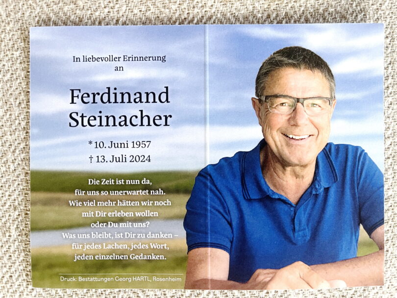 Die Kirche St. Rupert von Söllhuben konnte die große Anzahl der Trauergäste bei weitem nicht fassen, sogar der weite Friedhof war voll gefüllt von Menschen, die um Ferdinand Steinacher, dem ehemaligen Vorstand und Geschäftsführer der Auerbräu Rosenheim  trauerten. Steinacher war völlig überraschend von 67 Jahren verstorben, er hinterlässt nicht nur bei seiner Frau Gaby sowie bei den Familien seiner Söhne Marco und Hannes eine schmerzhafte Lücke.