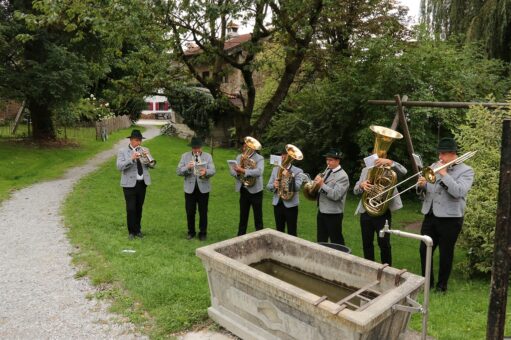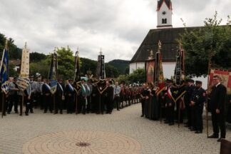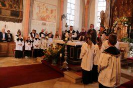 Eine große Anzahl von Trauergästen aus den Gemeinden, begleitet von zahlreichen Fahnenabordnungen, sowie Bürgermeister Christoph Schneider, Neubeuern und Susanne Grandauer aus Nußdorf und Vertretern der Kirchengremien, formierten sich vor dem Leichenhaus am Friedhof in Altenbeuern. Persönliche Wertschätzung, berufliche Verbundenheit und ihre Berufung zum Pfarrerleben bekundeten auch die Pfarrvertreter aus benachbarten Gemeinden. Eine Rosenkranzlitanei, wie vom Verstorbenen erbeten, begleitet von einer Saitenmusik, gab am Vortag der Beerdigung die Möglichkeit des persönlichen Gedenkens an den Ortspfarrer.