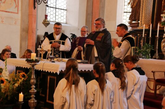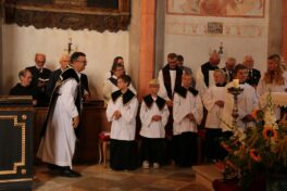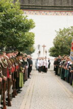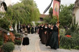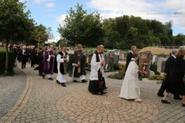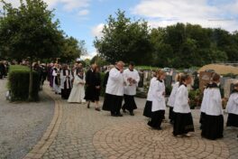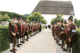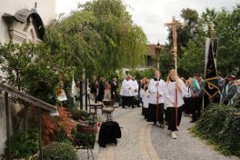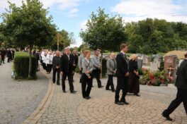 Dekanstellvertreter Pfarrer Fabian Orsetti aus Stephanskirchen in Vertretung des Ordinariats, Ortspfarrer Christoph Rudolph, Diakon Thomas Jablowski, der von Pfarrer Reuder betreut wurde sowie Pfarrer Thomas Schwarzenberger aus Erl feierten in Konzelebration den Altardienst begleitet von zahlreichen Altardienern. Das Evangelium der Emmaus-Jünger, das Evangelium des Geburtstages von Josef Reuder, stand im Mittelpunkt des Messgeschehens. Gemeinsam gehen, ein Ziel haben, Fremde miteinzubeziehen, um dann die Wahrheit kennen zu lernen. Diesen Weg der Jünger, so Pfarrer Thomas Schwarzenberger ging auch Josef Reuder in seinem Leben. Der Pfarrer skizierte so in seiner persönlichen Wertschätzung für seinen Glaubensmitbruder, das Kennenlernen und den gemeinsamen Weg, den wir gegangen sind, weil wir uns zufällig trafen. Aus dieser Verbundenheit, kam die Frage “Kannst Du mir einmal aushelfen“ welche Reuder mit „Ja“ beantwortete. So war er dort in Erl, wie auch im Pfarrverband, manchmal darüber hinaus, als Ruhestandspfarrer aktiv. Mit zunehmendem Alter und den damit verbundenen Einschränkungen immer weniger, bis es nicht mehr ging. Josef Reuder erbat keine Bekundungen am Grab, diesem Ansinnen wurde entsprochen. Ein langer Trauerzug folgte der Beerdigungsmusik zur Priestergrabstelle wo die Urne der geweihten Erde übergeben wurde. Pfarrer Fabian Orstetti sprach dabei die Gebete der Kirche, wo man im gemeinsamen Gebet um die Fürsprache Mariens bat. Wir verabschieden uns vom Menschlichen, so Pfarrer Thomas Schwarzenberger – dies wird jeden von uns treffen, die Seele aber wird bei uns bleiben, und uns erinnern. Ein Ehrensalut der Gebirgschützenkompanie galt Kompaniepfarrer Josef Reuder für sein Mitwirken.