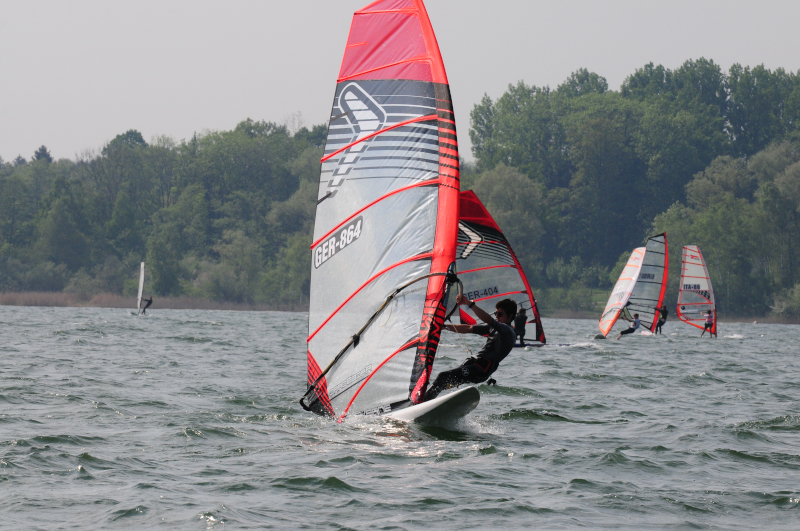 Erfreuliche 14 Jugendliche bewältigten den Kurs mit dem internationalen Jugendboard „BIC Techno“. Hier gewann die U 19-Wertung Selina Horber aus Garmisch, die auch für den RSC Chiemsee startet, bester U 17 wurde Benjamin Anderlan vom WSC Kaltern. Für 8 Nachwuchssurfer gab es 6 Wettfahrten auf einem verkürzten Kurs und eine extra U 13-Wertung, sie zeigten bei Welle und vier Windstärken schon beeindruckende Leistungen. Alle sechs Wettfahrten gewann dabei die 12-jährige Maja Anderlan vom WSC Kaltern. Zweiter wurde der um ein Jahr jüngere Edi Burger aus Aschau vor Jonas Morandell, ebenfalls aus Kaltern/Südtirol. Dahinter landete Simon Huber aus Prien, vor Amelie Huber aus Aschau, die am zweiten Tag mit zwei zweiten Plätzen glänzte.