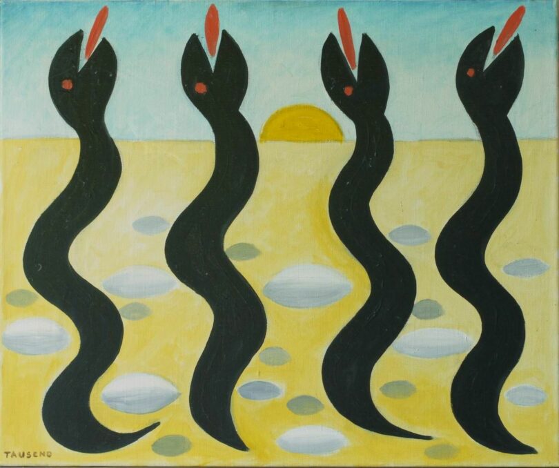 Titelbild: Die Schlange und die Sonne sind zwei der Symbolträger, die nicht nur bei Bruno Tausend (siehe Foto) in der Ausstellung „Das Symbol. Erkenntnisse des Absoluten“ auftauchen. Die Ausstellung der Städtischen Galerie im Kulturforum Klosterkirche zeigt anhand von Malerei, Druckgrafik und Bronzeplastiken von fünf renommierten Künstlern eine große Bandbreite an Interpretationsansätzen.