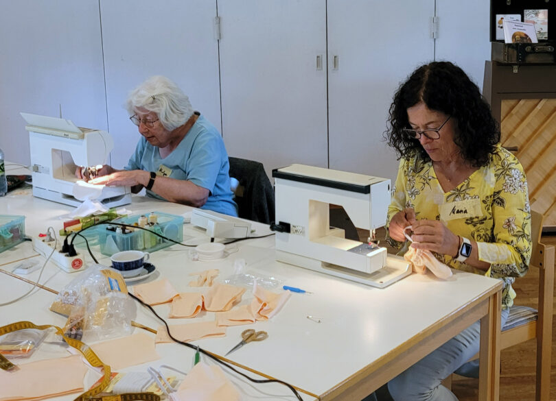 23 Frauen haben im Pfarrsaal Heilig Kreuz miteinander Charli-Puppen für den Trostkoffer hergestellt. Den ganzen Tag wurde fleißig genäht, gestickt und gestopft, sodass am Ende zwölf Püppchen fertig waren.