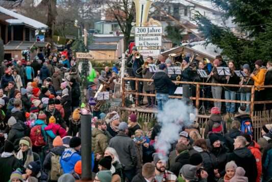 Der Unterlandler Christkindlmarkt verlief auch für den Musikverein Übersee-Feldwies erfolgreich. An und in der neuen Musi-Hütte, an der Keschtn-Braterei und Feldküche sowie unter der beleuchteten Tuba wurden die zahlreichen Besucher mit der beliebten Feuerzangenbowle, den gebratenen Keschtn und thailändischer Tom-Yam-Suppe aus der Feldküche verköstigt.