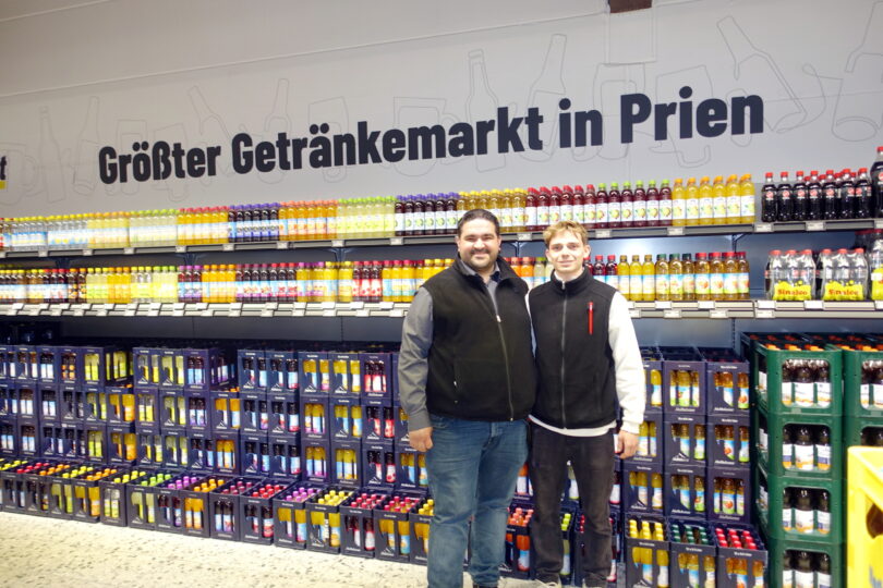 Fotos: Hötzelsperger – Eindrücke von Priens größtem Getränkemarkt nach der Eröffnung – 1. Markt-Betreiber Selcuk Coban und sein Marktleiter Kristian Zaracko. 2. Impressionen von einer Riesenauswahl.