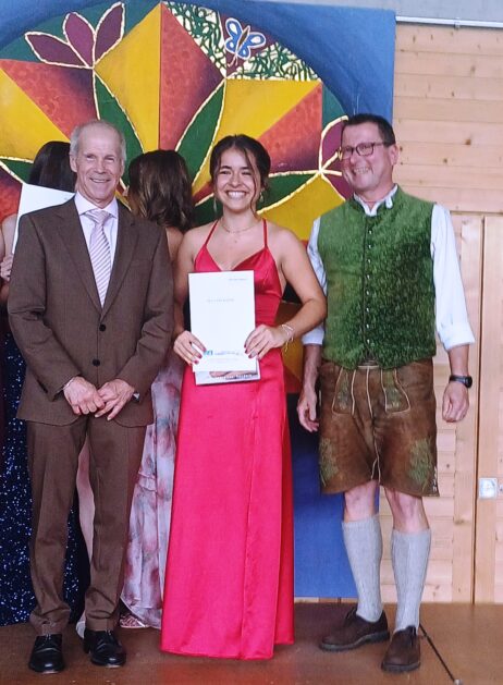 Am Ende des Festakts zeichnete Günther Miller eine ganze Reihe von Schülerinnen jeweils für ihren Einsatz für soziale Projekte der Schule oder die Mitgliedschaft in Schulchor oder Schulorchester aus. Unterhaltsam und schön war die musikalische Gestaltung der Feier durch viele musizierende und in Gruppen singende Schülerinnen, vorbereitet von den Musiklehrern Margarete Zahnbrecher und Rupert Schmidhuber. Zu Beginn der Feier gab es einen Sektempfang, wo die nun ehemaligen Schülerinnen und ihre Eltern den Beginn der Ferienzeit und den neuen Lebensabschnitt feiern konnten.