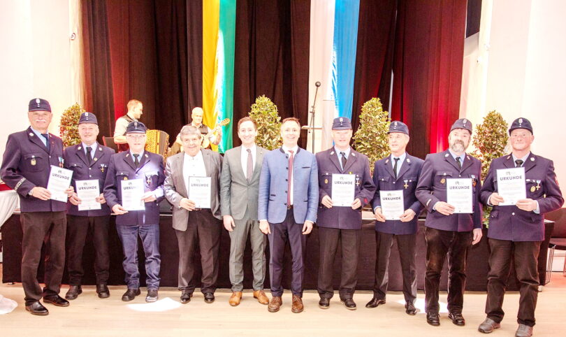 Zum Schicksalstag wurde der 5. März 2024 für ihn, wo er sich bei einem Brand in der Kammerer Straße eine schwere Handverletzung zugezogen hat. Trotz massiver Einschränkungen – auch beruflich als Selbstständiger eines Hausmeisterservices – habe Loban „nie den Spaß verloren, anderen zu helfen und sein Wissen weiterzugeben“, so Schulz, was ihn besonders heraushebe. Klaus Kropp, 1. Kommandant der Haslacher Wehr, freute sich über die Wertschätzung der Stadt gegenüber den ausgeschiedenen Kameraden, die über Jahrzehnte familiäre Entbehrungen, persönliche Einsatzrisiken und schlimme Erlebnisse in Kauf genommen hätten. Kropp überreichte eine Urkunde an Rupert Geistanger und Sepp Wernberger (beide 49 Jahre im Feuerwehrdienst), Sepp Windfellner, Hias Mörtl, Hans Geserer (alle 48 Jahre) und Jürgen Mayer (36 Jahre). Alle sechs Männer seien „tragende Säulen“ gewesen und bei den Kameraden „jederzeit willkommen“ – nicht zuletzt bei der Feier des 150. Jubiläums des Feuerwehrvereins im kommenden Jahr.