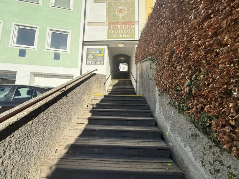 Heller und freundlicher: Die Apothekerstiege bekommt in den kommenden Wochen eine neue Beleuchtung. Außerdem erhält sie einen frischen Anstrich. Für die Elektro- und Malerarbeiten muss die Treppe für rund vier Wochen gesperrt werden.