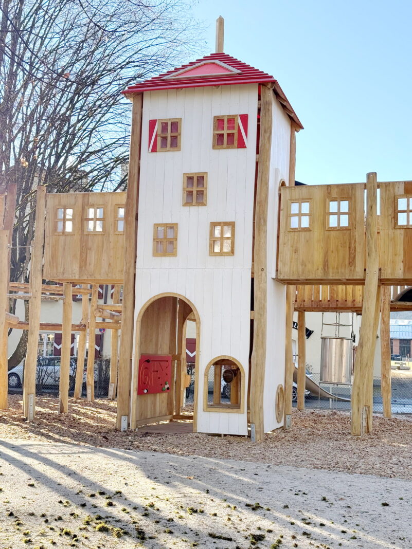 Bericht und Foto: Stadt Traunstein – Der Jacklturm ist das Herzstück des neuen Spielplatzes in der Au.