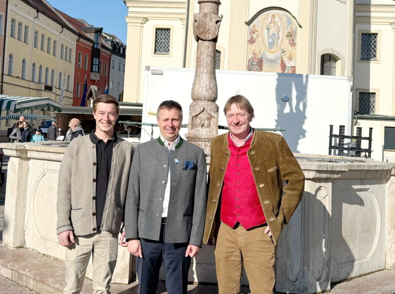Bericht und Foto: Stadt Traunstein / Marie Mühlthaler – Der Traunsteiner Lindl ist saniert, und die Rechnung übernahm ein örtlicher Brauereibesitzer (von links): Simon Wochinger, Oberbürgermeister Dr. Christian Hümmer und Rudi Wochinger.