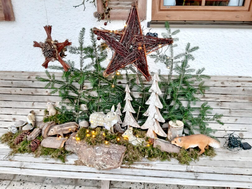 Auf die Kinder wartet ein leeres „Heumandl“, daran können sie ihren individuell gestalteten Christbaumschmuck aufhängen und die im Workshop entstandenen Weihnachtsgeschenke „probeweise“ darunterlegen. Unterstützung bei der handwerklich-künstlerischen Umsetzung mit Schere, Pinsel, Blattgold und Kleister finden die kleinen Kursteilnehmer durch die Künstlerinnen und Kursleiterinnen Claudia Weber und Alessia von Mallinckrodt.