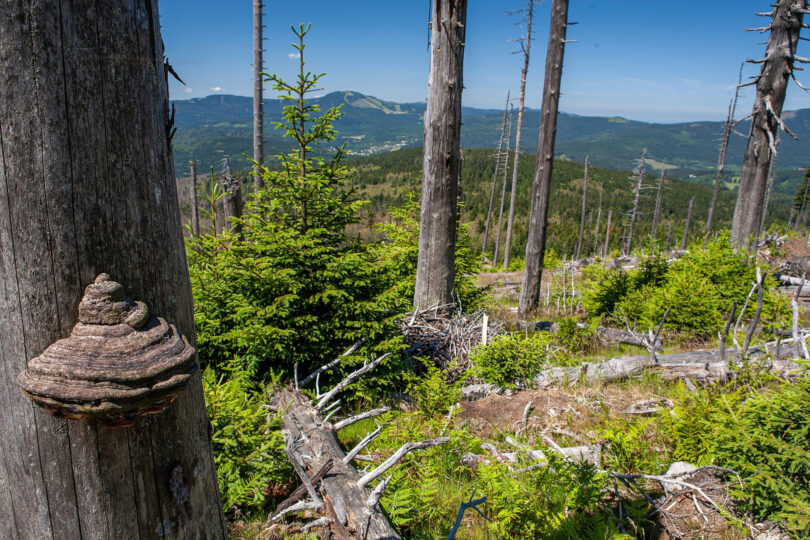 Der wohl schönste Ausblick auf die umliegenden Gipfel von Velký Javor (Großer Arber), der Poledník (Mittagsberg), der Jezerní Hora (Seeberg) und der Pancířský Hřbet (Panzerrücken) bietet sich bei einer geführten Wanderung mit Waldführer Bernhard Bullermann am Sonntag, 10. August. Von Bayerisch Eisenstein wandert er mit Naturbegeisterten auf den Polom (Faulbaum) und eine Runde um Železná Ruda (Böhmisch Eisenstein).