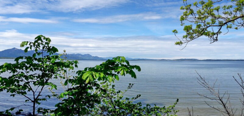“Still ruht der See” – dies gilt auch für den großen Chiemsee, der auch gerne das “Bayerische Meer” genannt wird. Dennoch lassen sich trotz derzeitig nicht möglicher Schiffsausflüge dem See schöne Seiten abgewinnen, zum Beispiel vom Ufer der Gemeinde Übersee aus.