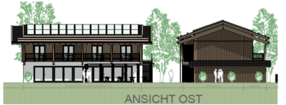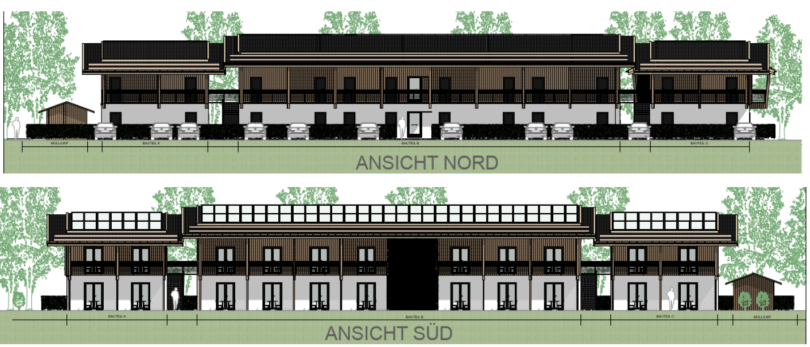 Bericht und Repros: Christiane Giesen/Gemeinde Übersee – Nahe der Autobahneinfahrt zur A8 soll ein Hotel/Motel mit 33 Zimmern gebaut werden. Hier nach den Plänen der verschiedenen Ansichten.