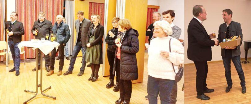 Weiterer wichtiger Punkt des Neujahrsempfangs war die Vorstellung der Kandidaten für den Pfarrgemeinderat, die heuer am 1. März neu gewählt wurden. Der Vorstand des Pfarrgemeinderates, Pfarradministrator Konrad Roider, rief die Anwesenden auf, nicht nur am 8. März zu den Gemeinderatswahlen zu gehen, sondern sich auch am 1. März an den kirchlichen Wahlen zu beteiligen. Der bisherige Pfarrgemeinderat Fred Bandtlow, Vorsitzender des Wahlausschusses, tritt selbst nicht wieder an. Unter seiner Leitung stellten sich die Kandidaten kurz vor. Wieder kandidieren wird Burgi Häckel (75 Jahre), Rentnerin und erste Vorsitzende des Pfarrgemeinderates, Heini Merlin (76), Maurer, und Petra Noichl, (59), Verkäuferin. Neu kandidieren Tina Dilorenzi, (58), Einrichtungsberaterin, Klaus Esterer, (53), Fachjournalist für Agrartechnik, und Magdalena Esterer, (44), Fachjournalistin für Agrartechnik. Bei einem Glas Sekt und anderen Getränken konnten sich alle näher kennenlernen und auf das neue Jahr anstoßen.