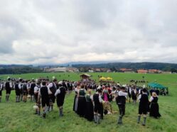 Die Blaskapelle Übersee-Feldwies beim großen Bezirksmusikfest in Schönram – Voller Vorfreude und Erwartungen startete die Blaskapelle Übersee-Feldwies in Richtung östliches Ende des Landkreises. In Schönram feierte die Musikkapelle Ringham-Petting ihr 100-jähriges Jubiläum beim großen Bezirksmusikfest des Musikbund für Ober- und Niederbayern, Bezirk Chiem- und Rupertigau.