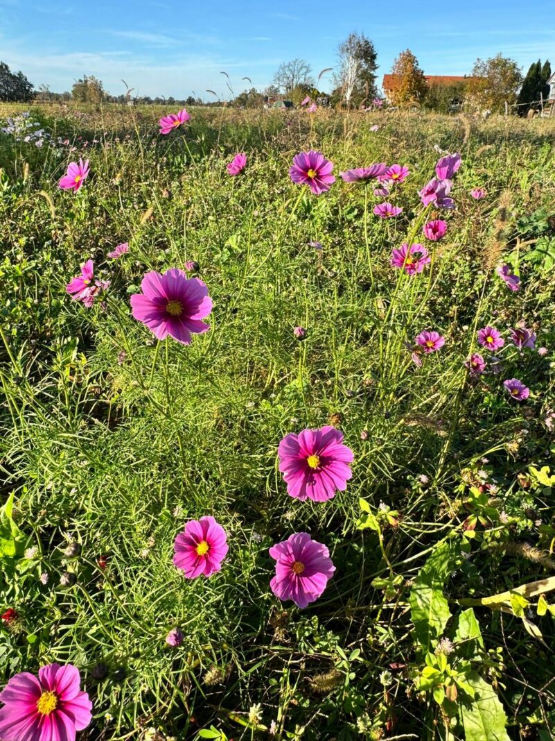Kürzlich, Mitte September war die Zeit gekommen Bilanz zu ziehen über die Entwicklung der Aktion in diesem Jahr. Und so kamen der Vorsitzende der CSU Wössen Johannes Weber sowie Landtagsabgeordneter Konrad Baur mit den landwirtschaftlichen Projektpartnern Christian Maier und Hans Maier zu einem Besichtigungstermin vor Ort zusammen. “Auf den ersten Blick, stellt man fest, dass viele Blumen bereits verblüht sind. Die bereits verblühten Pflanzen boten den Sommer über Nahrung für Bienen, Hummeln und Schmetterlinge. Man könnte dabei denken, dass den Blumen in ihrem nunmehrigen Zustand keine große Funktion mehr zukommt. Aber das täuscht!”, so Christian Maier. “Auch in abgeblühtem Zustand bieten sie mit ihren Stielen, Stängeln und Blütenköpfen wichtige Überwinterungsmöglichkeit und damit Schutz für viele Insekten. Sie werden deshalb bis zum “Auszug” der Insekten im nächsten Frühjahr stehen gelassen.” so Christian Maier weiter. Er fügte an: “Und damit sind ihre Wirkungen noch nicht erschöpft. Denn im Anschluss daran werden die Pflanzen in den Boden eingearbeitet und tragen im Weiteren zum Aufbau respektive Erhalt von Humus und damit eines vitalen Bodens bei.”. Christian Maier ergänzt: “Aber der erste Blick ist auch in anderer Hinsicht nicht der zutreffende: Wie ein zweiter Blick offenbart, sind doch noch vergleichsweise viele Blumen am Blühen. Dazu gehört etwa der Persische Klee. Diese bieten noch viel Nektar.”.