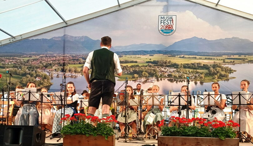 Tolle abwechslungsreiche Musik mit versierten Musikanten erfreuten das Publikum beim Jubiläumsabend des Musikvereins Übersee-Feldwies im großen Festzelt in Moosen. Viele Besucher aus dem ganzen Landkreis und darüber hinaus waren erschienen, darunter viele Vertreter aus Geistlichkeit und Politik. Gleichzeitig mit dem Jubiläum des Musikvereins feierte auch der Bezirksmusikverband für den Chiem- und Rupertigau im Musikbund von Oberbayern und Niederbayern (MON) sein 55. Bezirksmusikfest, so dass auch Vertreter aus den 16 Bezirken des MON mit dabei waren und Musikanten der Musikkapellen von weither.