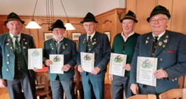 Für langjährige Mitgliedschaft bei der KSK Übersee wurden unter anderem geehrt (von links), Josef Pfisterer, Georg Schobersteiner, Sepp Stecher senior, Sepp Rosenhuber und Sebastian Stephl.