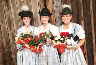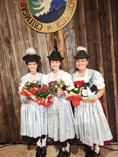 54 Dirndl aus 23 Trachtenvereinen des Chiemgau-Alpenverbandes, acht Preisrichter mit deren Obmann Lorenz Mühlberger aus Reit im Winkl sowie eine exakt aufspielende Preisplattler-Musi unter der Leitung von Andreas Hilger aus Rottau waren die besten Voraussetzungen für eine besondere Brauchtumsveranstaltung im Festzelt des Trachtenvereins „Chiemgau“ Feldwies, dem Ausrichter des heurigen und inzwischen 87. Gautrachtenfestes vom Chiemgau-Alpenverband für Tracht und Sitte. Siegerin und das zum dritten Male hintereinander wurde Veronika Brandstetter aus Übersee, sie gewann mit der außergewöhnlich hohen Punktzahl von 79,5 (von möglichen 80,0) vor Kathariana Osterhammer aus Staudach und vor Theresa Reiter aus Niederaschau und nahm den Wanderpokal endgültig mit nach Hause.