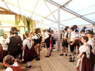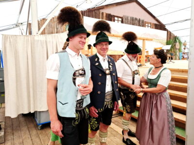 Gauvorplattler Michael Memminger aus Marquartstein, dem Ort des nächstjährigen Gaudirndldrahns im Rahmen des Jubiläums „100 Jahre Chiemgau-Alpenverband für Tracht und Sitte“ freute sich, überaus viele aktive Dirndl und Buam sowie Trachtlerinnen und Trachtler aus dem Chiemgau und darüber hinaus begrüßen zu dürfen. Dem Bewertungswettbewerb voraus gingen in den Vereinen viele Monate des Probens und auf der Festzeltbühne dann das sogenannte „Eindrehen“ zur Feinabstimmung mit Musik, Bühne und Boden. Nach gut zwei Stunden waren alle Dirndl mit ihren jeweiligen Plattlerbuam durch. Sechs Dirndln mussten aufgrund ihrer Punktgleichheit um die vorderen Plätze noch einmal antreten beim sogenannten „Rittern“. Als auch diese Auftritte im Auswertungsbüro mit Zweiter Gauvorständin Lisbeth Tengler im Ergebnis feststanden, bedankte sich Gauvorstand Thomas Hiendl bei allen Beteiligten auf, vor und hinter der Bühne für das Miteinander. Gaudirndlvertreterin Martina Huber aus Wildenwart sagte namens der Aktiven Dank mit den Worten: „120 mal das Birkenstoan Glöckei und 120 mal den Walzer hintereinander zu spielen, das ist eine ebenso starke und konzentrierte Leistung wie das Bewerten der Preisrichter“. Ihr spezieller Dank galt Andreas Hilger und den Musikanten sowie den Preisrichtern Engelbert Steiner, Christian Lechner, Thomas Stoib, Sepp Hamberger, Sepp Hacher, Andi Hell senior und Peter Reiter und ihr Appell richtete sich an die Zukunft: „Bitte macht weiter und in manchen Vereinen vielleicht noch etwas mehr mit, die Proben und die Wettbewerbe lohnen sich, dann innerhalb der Trachtler entstehen Freundschaften und am Ende einer Aktivenzeit hat meinen einen Koffer voller schöner Erinnerungen“. Für alle Dirndl gab es zum Dank fürs Mitmachen schöne Erinnerungspreise.