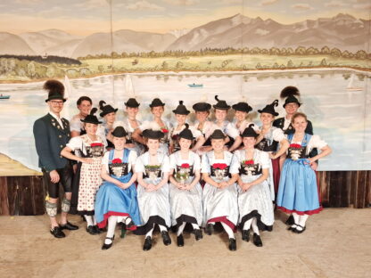 Oben von links nach rechts 2. Gauvorplattler Franz Weingartner, Teresa Schuster (Hohenaschau), Anna Boggusch (Atzing), Vroni Bremer (Frasdoorf), Anna Deingruber (Bernau), Julia Aigner (Marquartstein-Piesenhausen), Marina Sattelberger (Hohenaschau), Sophie Posch (Marquartstein-Piesenhausen), Stefanie Sattelberger (Hohenaschau), Erster Gauvorplattler Michael Memminger: 2 Reihe vorne von links nach rechts, Maria Zaiser (Schleching), Michaela Rosenwink (Wildenwart), Katharina Osterhammer (Staudach), Veronika Brandstetter (Übersee), Theresa Reiter (Niederaschau), Marie Schröder (Übersee) und Vortänzerin Martina Huber.