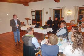 Vorsitzende Kathi Schmid freute sich ob des großen Zuspruchs aus den Helferkreisreihen und über den überraschenden Besuch aus Ternopil und sagte eingangs: „Seit mehr als 25 Jahren gibt es enge Verbindungen zur Diözese Ternopil und den dortigen Einrichtungen. War anfangs Hilfe für den Aufbau und die Ausstattung des Priesterseminars erforderlich, trat mit der Zeit die Hilfe für die Ausbildung der Priester im dortigen Priesterseminar in den Vordergrund. Dies zahlt sich nun aus, da diese ehemaligen Seminaristen jetzt in der kirchlichen Verantwortung stehen und wir mit ihnen bestens bekannte und verlässliche Partner zur Seite haben“. Unmittelbar nach Kriegsbeginn nahm der Chiemgauer Helferkreis Kontakt zu Pfarrer Firman auf und es begann eine riesige Sammel- und Spendenaktion im Priener Feuerwehrhaus. Bislang konnten 12 Fahrzeuge mit Hilfsgütern nach Ternopil gebracht werden. Um all dies von der Verpackung, Lagerung, Verzollung und Fahrt bewältigen zu können, bedurfte es vieler ehrenamtlicher Leute, die nunmehr zum aktuellen Austausch eingeladen wurden. Dabei bedankte sich auch Priens Bürgermeister Andreas Friedrich bei den Priener Vereinen und Bürgern für ihren Einsatz und ihre Großzügigkeit. Angesichts der von den ukrainischen Priestern gezeigten Bild-Eindrücke und der Aufnahmen, die Gemeinderat Johannes Dreikorn von seiner jüngsten Hilfslieferung nach Ternopil mitbrachte, sagte der Priener Bürgermeister, der selbst schon einmal in Ternopil als Helferkreis-Mitglied zu Besuch war: „Wer diese Bilder sieht und human ist, der will helfen.”