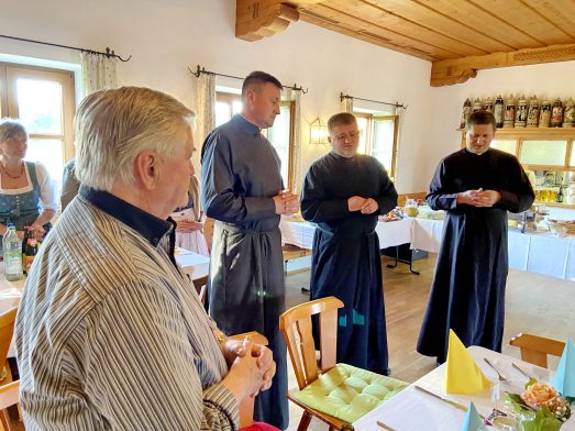 „Was von Euch kommt, kommt von Herzen und wird bei uns dringendst benötigt, zur Zeit haben wir allein im Wallfahrtsort Zarvanytsia bei 300 Einwohnern 200 Flüchtlinge und es werden täglich mehr“ – mit diesen Worten machte Pfarrer Firman auf die kriegsbedingte Notlage in der westukrainischen Diözese Ternopil mit mehr als 250 000 Flüchtlingen aufmerksam, als er zusammen mit seinen Priesterkollegen Dutchak und Shafran kurzfristig zu einem Helferkreis-Treffen in das Priener Trachtenheim extra aus der Ukraine kam. Eingeladen hierzu hatten die Helferkreis-Vorsitzenden Kathi Schmid und Fritz Tischner, um sich für das bisher Geleistete mit einem Abendessen zu bedanken. Der Dank galt neben all den vielen Sach- und Geldspendern vor allem allen Helfern sowie den vielen Personen, Vereinen und Organisationen, die mit speziellen Veranstaltungen, Aktionen und Aufrufen Geldspenden sammeln konnten und sich so an der Finanzierung der Hilfstransporte aus der Chiemgauer Region in den bisherigen drei Monaten seit Beginn des Angriffskrieges gegen die Ukraine beteiligten. Den drei Priestern aus der Ukraine war es ein Herzensbedürfnis, für die bislang aus dem Chiemgau erfahrene Unterstützung Vergelt´s Gott zu sagen und einen Einblick in die aktuelle Situation vor Ort zu geben.