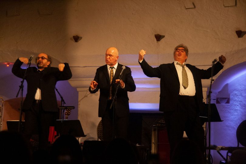 Der musikalisch-theatralische Durchanand ist am Samstag, 31. Oktober, ab 20:00 Uhr im Bad Aiblinger Kurhaus Programm. Fünferl präsentiert an diesem Abend Blasmusik, Lieder, Literatur, Theater, Klamauk, Unfug, Betrachtungen über die Unausweichlichkeit des Lebens und über die Leichtigkeit des Seins. Irrwitzige Posaunensoli mischen sich mit bodenständiger Weltsicht, es geht um die Liebe und um das Sterben, um das Reden und um das sich Versprechen, um vorher und danach.