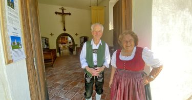 Josef Scheck, der immer ein Auge auf die Kapelle hat, fragte die Friederike nach der Wiedereröffnung, ob sie auch weiterhin die Pflege der Kapelle übernehmen würde, worauf diese wiederum meinte: „Das ist doch selbstverständlich.“ Als sichtbares Zeichen des Dankes überreichte ihr Josef Scheck, im Namen des Heimat-und Kulturvereins Frasdorf, ein paar Büchlein über die Kirchen, Kapellen und Flurdenkmäler in unserer Heimat. Ein kleiner, ehrlicher Dank an Friederike Panhans.