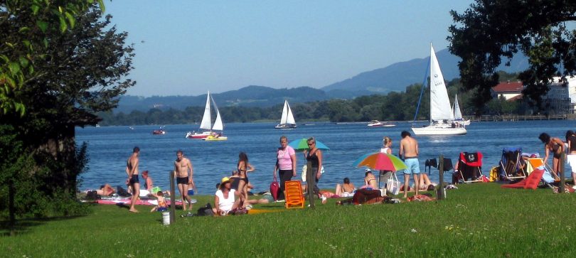 Foto: Hötzelsperger – Bildunterschrift: Badeplatz Schöllkopf in Prien a. Chiemsee