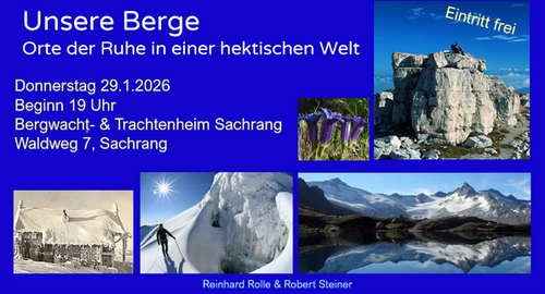 Während Reinhard Rolle informativ durch die Bergwelt führt, sorgt Robert Steiner – vielen besser bekannt als „Kalapatar“ von roBerge.de – mit passenden Sagen und amüsanten Anekdoten für die richtige Prise Alpingefühl. Dieser Vortrag richtet sich gleichermaßen an aktive Bergwanderer wie an Genießer, welche die Berge lieber entspannt aus der Ferne betrachten.