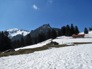 die Naderbauernalm mit Hochplatte und Friedenrath