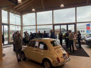 Die besondere Bauweise mit Schindeln an der Außenfassade sowie ein moderenes Autohaus präsentierte Huber Automobile GmbH