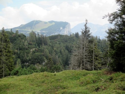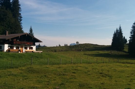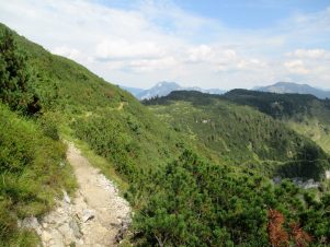 Ausgangspunkt ist die Hindenburghütte auf der Hemmersuppen – Alm, bis zu der wir ab Blindau mit einem Kleinbus hinauffahren. Wir wandern auf einer Forststraße, später auf einem Steig bis zum Pflegereck und weiter zu den zu den Durchkaser – Almen. Jetzt wird es interessant: wir kommen aus dem Schauen nicht mehr heraus bei den atemberaubenden Ausblicken auf die Berchtesgadener Bergwelt im Osten, auf die Gletscher der Hohen Tauern im Süden, auf den Chiemsee und den Wendelstein im Norden auf dem Weg zur Eggenalm. Auf dem gut markierten, von Latschen flankierten Weg stoßen wir schließlich auf die romantische Eggenalm mit dem Straubinger Haus.