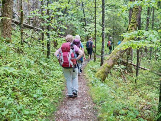 Am nächsten Tag strahlte bereits die Sonne über die Dächer der Altstadt, herrlich frisch die Morgenluft, so dass der Aufstieg zum Thumsee, wo es noch original Deicheln zu bestaunen gibt, das reinste Vergnügen war. Das Highligt des Tages war dann aber sicher die Weißbachschlucht. Ganz nah am Wasser windet sich der schmale Pfad, mächtig ragen die dunklen, felsigen Nordfluchten des Ristfeuchthorns empor und unten tost das wilde und glasklare Wasser des Weißbachs. Was für ein Naturschauspiel! Zum Schluss fuhr die Gruppe dann mit dem Bus zurück nach Inzell, wo man sich bei Kaffee, Kuchen und Eis über die zwei schönen Tage und die Entdeckung einer äußerst interessanten Ecke Oberbayerns austauschte!