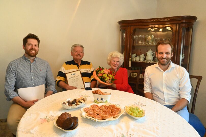 Im Rahmen einer kürzlichen Sitzung hatte die Vorstandschaft des Ortsverbandes den Beschluss und dies dabei einstimmig gefasst, dem Verbandsmitglied Peter Zettl die Ehrenraute des Ortsverbandes zu verleihen. Vorsitzender Johannes Weber, Geschäftsführer Dr. med. Florian Lesmeister sowie Digitalbeauftragter und Vorstandschaftsmitglied Klaus Hellmich überbrachten für den Ortsverband und dessen Vorstandschaft die zugehörige, gerahmte und von Parteivorsitzendem Dr. iur. Markus Söder, Bezirksverbandsvorsitzender Ilse Aigner, Kreisverbandsvorsitzendem Siegfried Walch sowie Ortsverbandsvorsitzendem Johannes Weber unterzeichnete Verleihungsurkunde sowie Ansteckraute samt Etui.