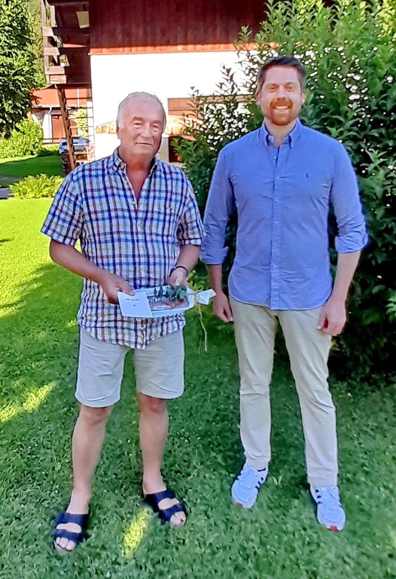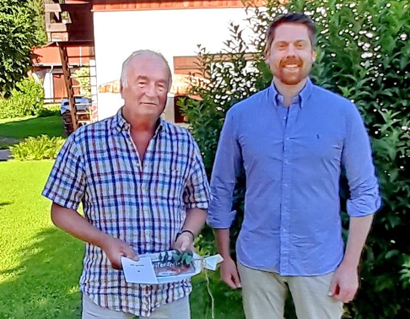 Gratulation an den ehemaligen Zweiten Bürgermeister von Unterwössen – Der Vorsitzende des Ortsverbandes Wössen der Christlich-Sozialen Union in Bayern e.V. Johannes Weber, im gemeindlichen Zweiter Bürgermeister, gratulierte namens des Ortsverbandes dem ehemaligen Zweiten Bürgermeister der Gemeinde Unterwössen Georg Haslberger herzlich zu dessen rundem Geburtstag. Bild Klaus Hellmich, Unterwössen.