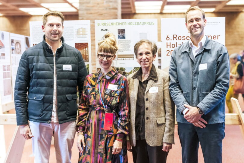 Bericht und Foto: Gemeinde Unterwössen / mvb-baukultur  – Das Bild zeigt (von links) den Zweiten Bürgermeister der Gemeinde Unterwössen und Juristen Johannes Weber, die Moderatorin des Baukulturtags und Architektin Karin Drexler, die Geschäftsführerin der Lebenshilfe Traunstein gGmbH und Bezirksrätin Annemarie Funke sowie den Geschäftsführer und Gesellschafter der MvB Baukultur GmbH Dr.-Ing. Max von Bredow.